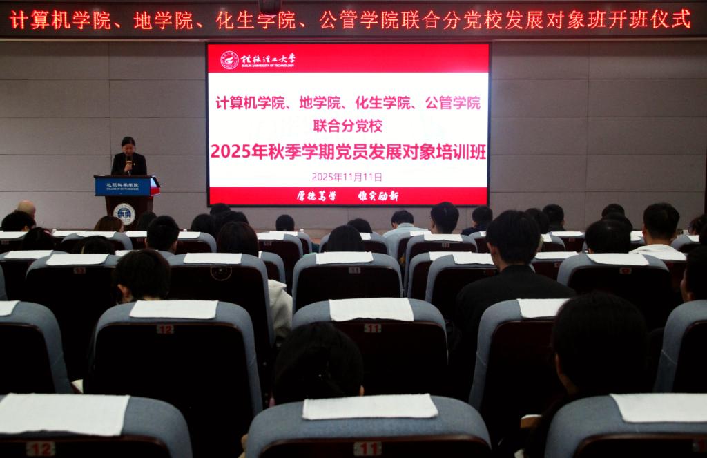 导航痕迹 当前位置: 首页 >> 党建工作 >> 党建工作 >> 正文 联合分党校2025年秋季学期发展对象培训班开班典礼顺利举行 作者:李学来 发布日期:2025-11-11 浏览次数: 11月11日中午12:20,计算机科学与工程学院、地球科学学院、1946伟德国际源自英国、公共管理学院联合分党校第三十期发展对象培训班开班典礼在雁山校区01501报告厅举行。各学院相关教务员出席典礼,全体培训班学员参加。典礼由阎安明老师主持。 典礼在庄严的国歌声中拉开帷幕。主持人首先介绍了到场各学院教务员,并宣布党校开班典礼正式开始。计算机科学与工程学院阎安明老师作开班致辞,他希望全体学员珍惜此次培训机会,将学习成果转化为实际行动,在今后的工作、学习和生活中持续加强理论修养,提升政治素养,始终以党员标准严格要求自己,发挥先锋模范作用,立足岗位、积极奉献;自觉践行党的宗旨,密切联系群众,全心全意为人民服务。 随后,培训班学员代表发言。她表示,将以此为契机,持续深化理论学习,筑牢信仰根基,主动锤炼党性,不忘初心、牢记使命,不负组织的期望,以青春之力投身强国建设,以实际行动争取早日成为一名合格的共产党员。 典礼最后,全体起立齐唱《国际歌》。至此,开班典礼圆满结束。 本期培训班将围绕党的性质、宗旨、纲领和指导思想等核心内容,开展形式多样、内容丰富的理论教学,旨在引导学员进一步增强党性修养,努力向合格党员标准靠拢,争取早日加入党组织。 党课现场 (一审:李学来 二审:马文硕 三审:李少华) 上一条:学院党委书记为2025年秋季学期发展对象培训班讲授《中国共产党党员的义务和权利》专题党课 下一条:学院召开2025年统战工作座谈会