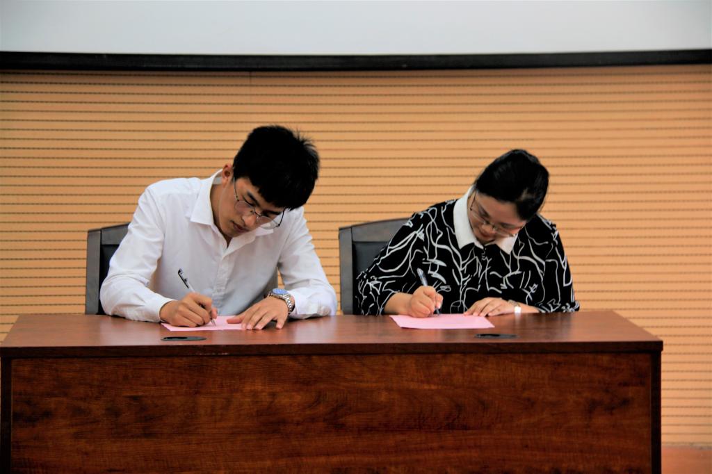 接下来,隆重举行了“科技化生、创新圆梦”科技文化节闭幕式。首先,进行大创孵化基地入驻仪式,饶筠筠老师与学生代表黄瑞麟、赵启迪签订了入驻申报书。然后,李霞老师为此次科技文化节闭幕发表致辞,李老师表示,本次科技文化节进一步培养了同学们的科学思维,拓宽了大家的科技实践平台,希望大家抓住机遇,做好学业规划,积极参加各项活动,提高综合素质,为考研及就业打下坚实基础。