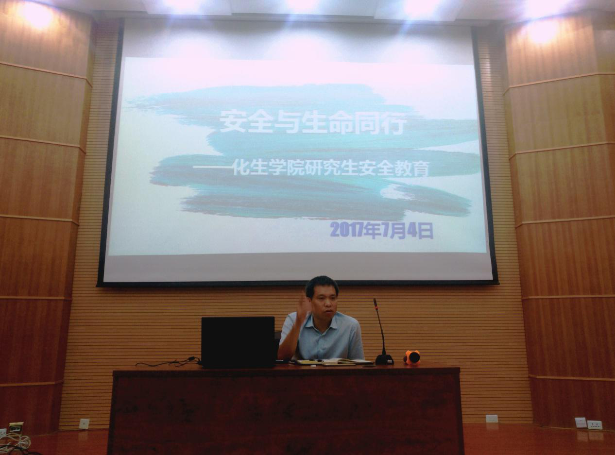 2017年7月4日上午,我院在雁山校区萃华楼学术报告厅召开“安全与生命同行”——研究生安全教育大会。大会由研究生辅导员饶筠筠老师主持,全体15级、16级研究生参加,化生学院副院长张淑华受邀作安全教育讲座。