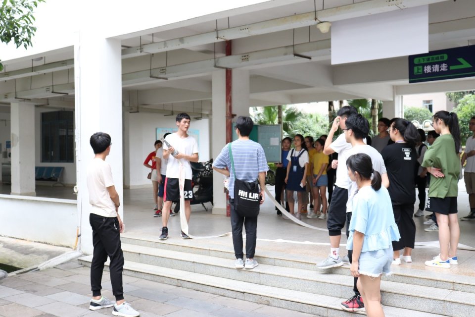 2019年5月5日漓江学院对面民房火灾事故发生以来,给广大师生敲响了警钟,学院高度重视学生安全。为使同学们深刻认识到“珍爱生命,安全第一,防范为主”的重要性,并且能够掌握一定的自防自救能力,化生学院楼管委于2019年5月25日下午组织了化生学院部分宿舍长进行了消防安全演练活动。
