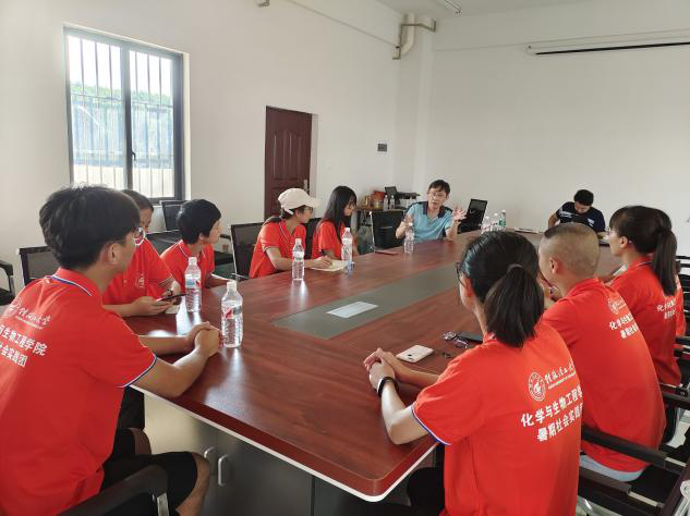(实践团成员工厂参观后讨论学习铝和稀土的处理过程和应用)