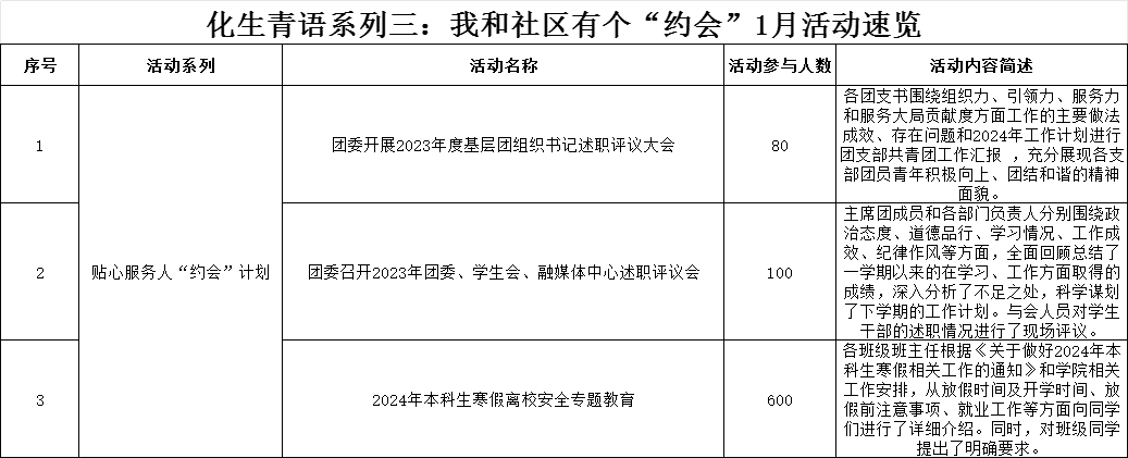 导航痕迹 当前位置: 首页 >> 伟德国际 >> 学生活动 >> 正文 【化生青语】化生青语系列三:我和社区有个“约会”1月活动速览 作者: 发布日期:2024-01-18 浏览次数: 为扎实推进学校“一站式”学生社区综合管理模式建设试点工作和1946伟德国际源自英国“三全育人”综合改革工作,提升学院“一站式”学生社区影响力,1946伟德国际源自英国将“一站式”学生社区以“党建+X”模式为基础,结合学院【化生青语】育人文化,将学院育人体系下沉社区,打造【化生青语】系列三——我和社区有个“约会”特色活动。1月份,结合学院社区团队,按照学院社区我和社区有个“约会”特色品牌活动,主要开展贴心服务人“约会”计划,同助力学院学子发展。按照“约会计划”,学院举办活动如下。 (一审:张伟颀 二审:黄道坤 三审:李少华) 上一条:学院开展2024年春季学期“开学第一课”专题教育 下一条:学院开展2024年本科生寒假离校安全专题教育