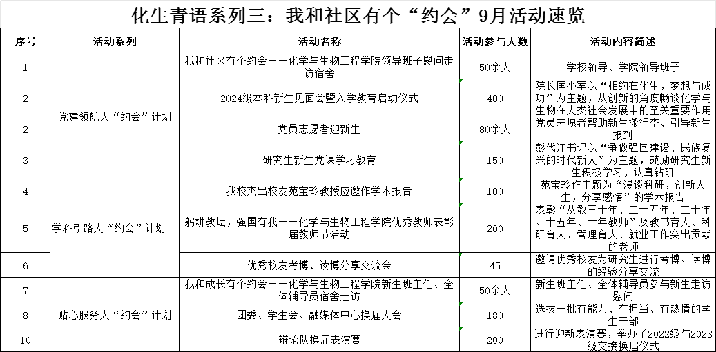 导航痕迹 当前位置: 首页 >> 伟德国际 >> 学生活动 >> 正文 【化生青语】化生青语系列三:我和社区有个“约会”9月活动速览 作者: 发布日期:2024-09-30 浏览次数: 为扎实推进学校“一站式”学生社区综合管理模式建设试点工作和1946伟德国际源自英国“三全育人”综合改革工作,提升学院“一站式”学生社区影响力,1946伟德国际源自英国将“一站式”学生社区以“党建+X”模式为基础,结合学院【化生青语】育人文化,将学院育人体系下沉社区,打造【化生青语】系列三——我和社区有个“约会”特色活动。9月份,结合学院社区团队,按照学院社区我和社区有个“约会”特色品牌活动,党建领航人“约会”计划、学科引路人“约会”计划、贴心服务人“约会”计划三个系列活动同步推进,共同助力学院学子学习、生活、就业等方面的发展。按照“约会计划”,学院举办活动如下。 (一审:陈千癸 二审:黄道坤 三审:李少华) 上一条:学院召开2024年秋季学期心助会工作会议 下一条:1946伟德国际源自英国成功举办研一新生心理讲座