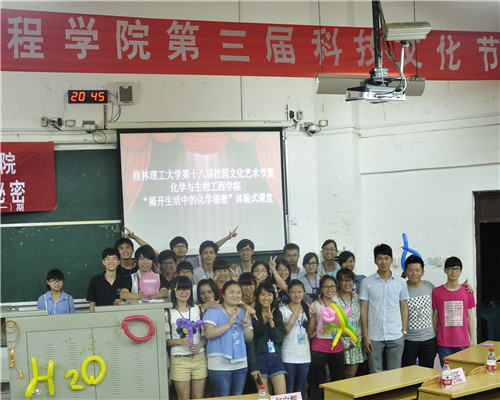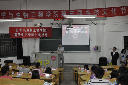 导航痕迹 当前位置: 首页 >> 伟德国际 >> 共青团 >> 正文 科技畅想青春未来 文化彰显化生风采――――化生学院成功举办“揭开生活中的化学秘密”体验式课堂活动 作者: 发布日期:2015-07-19 浏览次数: 为丰富校园文化生活,提高学校同学对化学学科的兴趣,24日晚7点,化生学院在雁山校区05103教室举办了伟德国际1946源于英国第十八届校园文化艺术节之“揭开生活中的化学秘密”体验式课堂活动。学院何宗辉老师、学院研究生会副会长张海峰以及各兄弟学院团委学生会代表作为嘉宾与学院同学一同参加了此次活动。 何宗辉老师首先致开幕词,他说到在理工科院校开展大学生科技活动具有很大的意义,对于提升同学们的专业知识素养起到很好的促进作用,他希望同学们能够以此类活动为契机,体验化学的奥秘,寓学于乐,培养自己对化学学科的钻研精神。接着主办方为大家播放了《进击的化学》宣传片,神秘新奇的化学实验现象,博得在场同学的阵阵惊呼。接下来张海峰同学结合PPT带领大家从生活食品类、生活衣物类等方面走进化学,揭开生活中的化学秘密,使大家对生活中的化学有了一个全新的认识。在课堂讲解后进行了实验展示环节,实验操作人员先后为大家展示了电池生火、可乐喷泉等现场实验,最后是观众互动环节,同学们积极踊跃参与答题,把现场气氛推向了最高点。 此次活动以生活中的化学为载体,引导学生去探讨科学,给同学们展示了化学的神奇与美妙,激发了同学们对化学的兴趣,并提高了大家的专业文化素养,为学院的学风建设起到积极的促进作用。 何宗辉老师发言 活动现场 活动现场2 实验展示 合影 上一条:班之魅力,刊动奇迹――化生学院成功举办班刊设计大赛 下一条:化生学院举办“快乐运动,快乐学习”趣味运动会