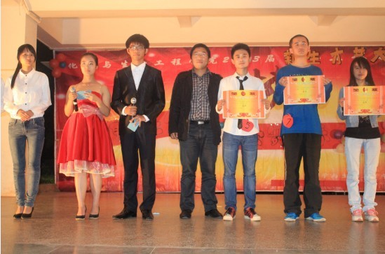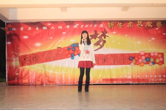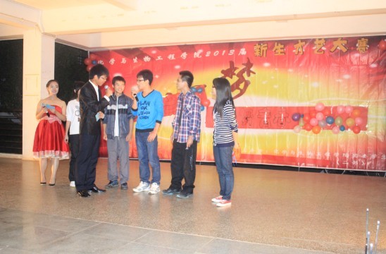 为进一步促进校园文化发展,活跃校园氛围,给2013级新生一个展现自我风采和勇气的舞台,11月1日晚,我院在雁山校区4栋教学楼天井举办了以“相聚化生,歌舞青春”为主题的2013级新生才艺大赛。学院党委副书记陶剑飞、团委书记周德海、团委副书记杨晓、2013级生物工程1、2班班导师李霞及化工1班班导师陈权启一同到场观看了比赛。