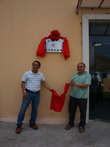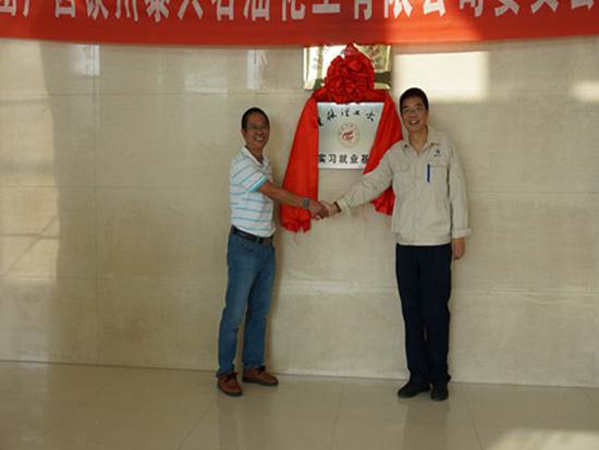 我院与广西钦州泰兴石油化工有限公司实习就业基地揭牌仪式(左为学院代表梁军书记,右为公司代表吉元来副总经理)