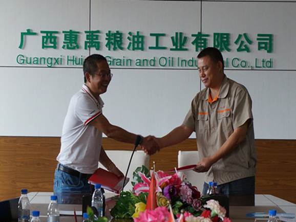 我院与广西惠禹粮油工业有限公司(我院生物工程专业实习基地)签订校企合作协议(左为学院代表梁军书记,右为公司代表孙立成副总经理)