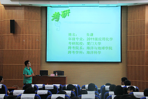 导航痕迹 当前位置: 首页 >> 新闻资讯 >> 学院新闻 >> 正文 朋辈领航,助力梦想――我院举行考研经验交流会 作者: 发布日期:2015-06-18 浏览次数: 为进一步提高我院学生的考研积极性,帮助同学们明确考研方向、坚定考研目标、学习考研经验,6月17日下午,我院在雁山校区12报告厅举办了2015年1946伟德国际源自英国考研经验交流会。我院2015年成功考取研究生的学生代表张芮、朱谦、陈雪妮在会上做了经验交流。 交流会上,张芮以自己的考研复习计划为例,针对报考途径、流程、注意事项做了详细的介绍,同时结合自身经历,总结了考研成功的方法和复习技巧;朱谦则用结合自身跨专业考研的经历,从兴趣爱好以及实际能力等方面,对同学们的专业选择进行指导,并鼓励同学们既然选择了考研,就一定要坚持信念不动摇;最后陈雪妮则从免试攻读的角度介绍了免试攻读硕士的申请流程及需要具备的条件,鼓励同学们打好学习基本功,时刻做好准备。 本次交流会的举办不仅为正在准备考研的同学提供了一个难得的交流平台,也为低年级的同学提供了一个更加深入了解考研的机会,大大激发了同学们考研的积极性及自信心。 交流会现场(一) 交流会现场(二 ) 交流会现场(三) 上一条:【桂工讲坛】我院唐群博士应邀做题为“学习改变命运,考研改变人生”专题讲座 下一条:1946伟德国际源自英国、地球科学学院、信息科学与工程学院、测绘地理信息学院、艺术学院春季学期联合党校预备党员培训班开班典礼顺利举行