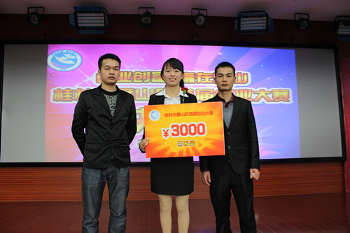 导航痕迹 当前位置: 首页 >> 新闻资讯 >> 学院新闻 >> 正文 我院学子在雁山首届创业大赛中喜获佳绩 作者: 发布日期:2014-12-28 浏览次数: 12月26日,桂林市雁山区首届创业大赛在雁山区政府9楼会议室举行。本次创业大赛总共有12个团队参加决赛,化生学院13级研究生廖秀芬等同学组成的团队---建筑设计工作室>成功晋级决赛。我院的部分研究生和本科生学生作为“亲友团”到现场为参赛团队呐喊加油。 比赛中,首先由各参赛团队进行了时长为6分钟的PPT展示、讲解环节,接着是4分钟的现场答辩环节,最后是评委和大众评审团投票选出最具人气奖的创业团队。12个团队分别上台展示了本团队的项目风采,大家在面对评委尖锐而有建设性的提问时,展示出了当代学生青年应具备的自信和随机应变能力。各位评委老师对于各团队的精彩表现给予了充分的肯定,并且就可能涉及的实际细节问题出发,指出了一些创业项目的不足之处,以及关于可行性及财务预算等方面的问题。最后,经过激烈的角逐和比拼,综合三个环节的得分,评选出了本次大赛一等奖1名、二等奖2名、三等奖3名,我院13级研究生廖秀芬等同学组成的代表团队在本次创业大赛中喜获三等奖。 本次创业大赛的召开,为我校莘莘学子提供了更为广阔的创业平台和视野,增进了我院师生与社会各界在创业方面的交流、沟通与联谊,促进了同学们积极主动将自身在大学中所学习、感悟及掌握的理论知识灵活联系和运用到实际生产、生活之中,以达到学以致用的目的。相信桂林市雁山区首届创业大赛的成功召开,能鼓励更多桂工学子将热血青春踊跃地投入到地区和社会发展之中。 颁奖活动现场 上一条:我院召开学习贯彻学校第二次党代会精神会议 下一条:我校和桂林淦隆环保科技集团举行联合实验室揭牌仪式