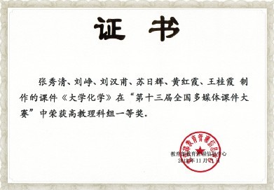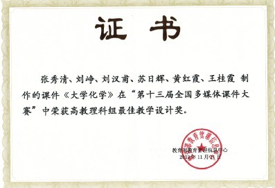 导航痕迹 当前位置: 首页 >> 新闻资讯 >> 学院新闻 >> 正文 化生学院教师在第十三届全国多媒体课件大赛中获佳绩 作者: 发布日期:2013-11-14 浏览次数: 11月9日至11日,第十三届全国多媒体课件大赛总决赛在北京举行。由我院张秀清、刘峥、黄红霞、王桂霞等老师制作的《大学化学》多媒体课件,经过初审、复审、决赛,从470件入围全国总决赛的作品中脱颖而出,荣获理科组一等奖和最佳教学设计奖。 全国多媒体课件大赛是由教育部教育管理中心组织开展的全国性大赛,每年举办一次,是规模最大、门类最全、参与人数最多的国家级多媒体课件大赛,也是目前我国现代教育技术应用方面级别最高的比赛。 赛前,我院通过组织教师、请教专家等形式,积极做好参赛准备工作,并以此次赛事为契机,提高全院教师的课件制作水平,不断改进教学方法,提高教学质量。获奖证书1获奖证书2 上一条:化生学院博士生导师郝再彬教授为我校师生做题为“转基因技术及安全”知识讲座 下一条:我院学生在第五届全国大学生数学竞赛中再传捷报