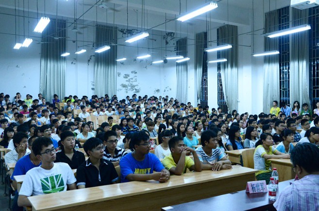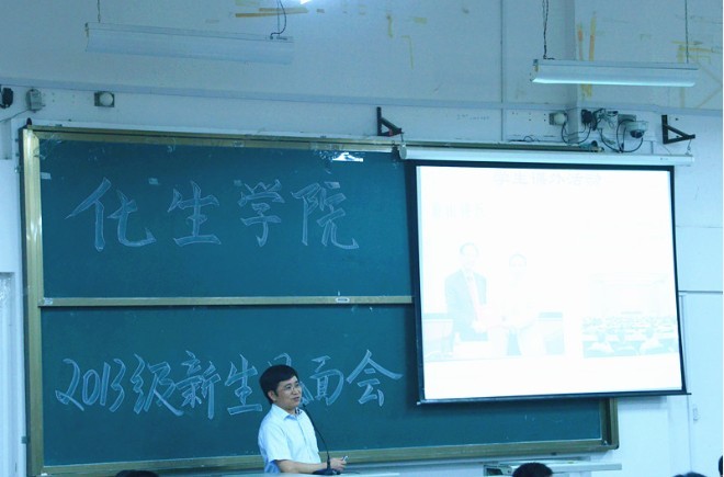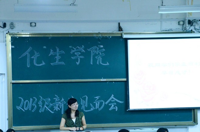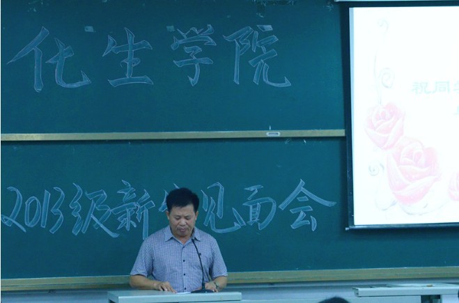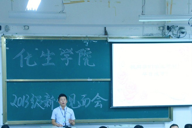 导航痕迹 当前位置: 首页 >> 新闻资讯 >> 学院新闻 >> 正文 我院举行2013级本科新生见面会 作者: 发布日期:2013-09-16 浏览次数: 金秋九月,桂花飘香,又是一年新生入学时。9月15日晚七点半,我院在雁山校区06207教室举行了2013级新生见面会。出席本次见面会的有学院党委书记胡祖生、党委副书记陶剑飞、学院院长李建平、副院长张淑华、副院长杨建文、团委书记周德海、学院各专业教研室负责人、各2013级班主任、各年级辅导员以及全体2013级本科新生。见面会由党委副书记陶剑飞主持。首先,陶副书记为大家一一介绍了出席本次见面会的领导和老师,接着,学院李建平院长就学院概况、学院历史、师资力量、教学与科研平台以及取得的成绩等几个方面作了介绍。同时,李院长还对新生提出了几点希望,希望他们尽快转换角色,树立目标,在大一要打好基础,为今后的学习做准备。随后,院学生会主席张海敏同学、13级新生陈鼎元同学分别作了发言。之后,教师代表李霞老师通过分享自身的学习以及工作经验,希望新生在未来的大学生活中能够学有所成。最后,党委书记胡祖生发言。胡书记首先代表学院全体师生对2013级本科新生的到来表示热烈的欢迎。然后,他对新生提出了几点要求,一是要学会学习,重视学习,二是要学会珍惜时间,不要虚度大学四年的时光,三是积极参加各种课外活动,提高自身素养。新生顿时起了强烈的共鸣,纷纷致以热烈的掌声,见面会在同学们热烈的掌声中圆满结束。见面会后,2013级辅导员周德海老师就接下来几天的日程做了布置。衷心祝愿2013级新生能够以积极的心态、饱满的热情迎接自己的大学生活,谱写新的篇章。学院党委书记胡祖生发言学院院长李建平为新生做学院介绍学院党委副书记陶剑飞主持见面会老生代表张海敏同学发言新生代表陈鼎元同学发言教师代表李霞老师发言团委书记周德海老师做工作布置见面会现场 上一条:【群众路线教育实践】丹桂飘香金秋时,化生迎新添活力 下一条:我院分工会积极备战羽毛球团体赛并取得开门红