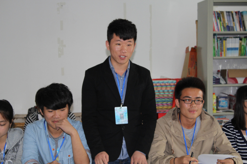 导航痕迹 当前位置: 首页 >> 新闻资讯 >> 学院新闻 >> 正文 我院学生干部到桂林电子科技大学电子工程与自动化学院交流工作经验 作者: 发布日期:2013-04-24 浏览次数: 4月20日下午,化生学院团委书记周德海老师、团委副书记杨晓老师带领学院各学生组织学生干部代表一行到桂林电子科技大学电子工程与自动化学院进行经验交流。此行得到桂林电子科技大学电子工程与自动化学院团委书记李祥斌老师的热情接待,并在桂林电子科技大学花江校区科技楼113举行了交流会。交流会上,李祥斌老师首先发言,他对我院共青团学生干部的到来表示热烈的欢迎,并对双方长期以来的友谊合作表示高度赞赏,并表示要与我院加强交流学习,共同发展。接着由我院周德海老师发言,并对我院的各类学生组织进行简单介绍,希望双方在交流中畅所欲言,共同进步。随后双方围绕学生组织的发展,学生工作的推进以及学生品牌活动的开展等方面进行深入交流和广泛探讨。双方各学生代表互相交流工作经验和心得,与会人员表示得到了很好的启发和收获。随后,李祥斌老师带领大家一同观看其学院学生的舞蹈表演。此次经验交流会,进一步增进了双方的工作交流,为我院借鉴兄弟院校的优秀经验提供了平台,为推动我院学生工作起到了积极的促进作用。桂电学生代表发言我院学生代表发言交流会现场 上一条:化生学院与桂林电子科技大学电子工程与自动化学院举行友谊辩论赛 下一条:资助育人,感恩回馈――化生学院举办优秀毕业生学习经验交流会