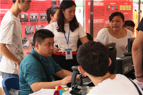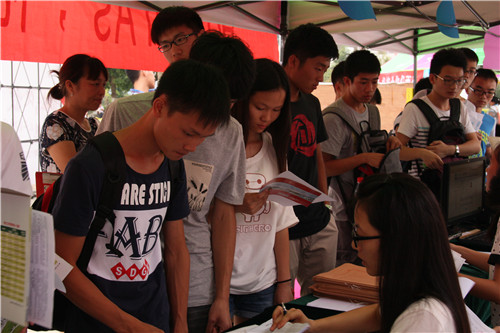 (图三:工作小组为提前到校的新生办理注册)