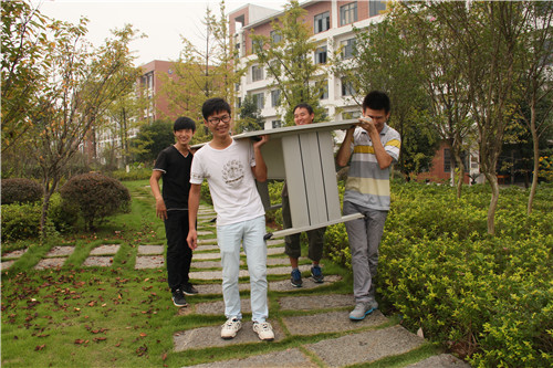 (图一:团委学生会的同学在搬运大本营所需物品)