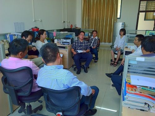 导航痕迹 当前位置: 首页 >> 新闻资讯 >> 学院新闻 >> 正文 实验中心开展“三严三实” 专题教育第三专题学习研讨及前期调研座谈会 作者:李 玲 发布日期:2015-10-23 浏览次数: 10月23日上午,我中心在9号楼309办公室召开“三严三实”专题教育调研座谈会。学院副院长刘勇平、中心主任李海云、8名实验老师齐聚一堂,就学校、学院工作进行座谈。 座谈会上,各与会教师就教师交流学习、课堂学生数量、课程安排、教学设施等实践教学环节面临的主要问题进行了讨论、提出了建议,针对一些具体问题交流了做法和经验。 刘勇平副院长在会议最后指出:本科实践教学工作是本科教学的重要环节,也是学校越来越重视的环节,学院将认真收集梳理此次会议的问题及意见建议,为开展好“三严三实”专题教育提供决策依据,为专题教育正式启动做好充分准备。 座谈会现场 上一条:我院领导班子深入师生当中进行“三严三实”专题教育意见征集 下一条:我院召开2015年大学生创新创业中期检查答疑会