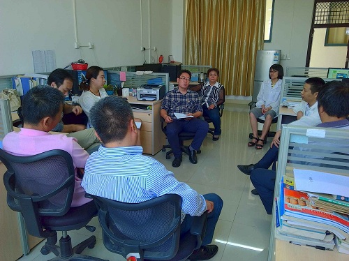 导航痕迹 当前位置: 首页 >> 新闻资讯 >> 学院新闻 >> 正文 我院领导班子深入师生当中进行“三严三实”专题教育意见征集 作者:hsxy 发布日期:2015-10-27 浏览次数: 根据学校有关要求和部署,我院领导班子成员在近期开展了一系列“三严三实”专题教育调研活动,他们通过现场走访、发放问卷、召开不同层面的座谈会等形式,深入到师生当中看实情、听意见。我院师生结合学院发展需要等对学院领导班子及成员提出了许多具有建设性的意见和建议,为顺利开展下一阶段的专题教育活动打下了良好基础。 10月21日梁军书记、李建平院长共同主持召开全体教研室、实验中心正、副主任座谈会 10月23日梁军书记、李建平院长共同主持召开新进教师座谈会 10月23日梁军书记支持召开化学与化工教研室、生物工程教研室全体人员座谈会 10月26日李建平院长、潘宏程副院长主持召开应用化学教研室、电化学教研室全体教师座谈会 10月26日张淑华副院长与部分教师代表就分管的研究生、科研工作开展座谈 10月23日刘勇平副院长主持召开实验中心全体人员座谈会 上一条:我院学子在第八届广西高校大学生化学实验技能竞赛中喜获佳绩 下一条:实验中心开展“三严三实” 专题教育第三专题学习研讨及前期调研座谈会