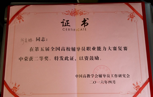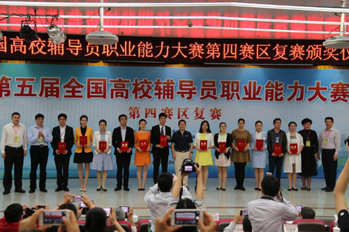 导航痕迹 当前位置: 首页 >> 新闻资讯 >> 学院新闻 >> 正文 我院在第五届全国高校辅导员职业能力大赛复赛中喜获佳绩 作者:李 冲 发布日期:2016-04-13 浏览次数: 4月9日至10日,第五届全国高校辅导员职业能力大赛复赛在广州举行,来自西藏、云南、广西、海南、福建、广东等6省(区)的60名高校专职辅导员参加了第四赛区的比赛。我院辅导员何宗辉及管理学院柴靓代表广西高校参赛,在比赛中表现出色,双双获得复赛二等奖。 本次比赛包括基础知识测试及网文写作、主题班会、案例分析、主题演讲和谈心谈话等5个环节。复赛最终评出一等奖10名,二等奖12名,三等奖18名,优秀奖20名。 何宗辉(左八)、柴靓老师(右三)接受颁奖 获奖证书 上一条:生物工程教研室召开“强基创优”工作落实会及生物工程专业本科人才培养方案讨论会 下一条:我校2016年第一期入党积极分子联合培训班开班典礼顺利举行