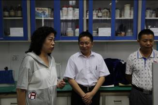 参观实验室(右起:李建平院长、王兰院长、李海云老师)