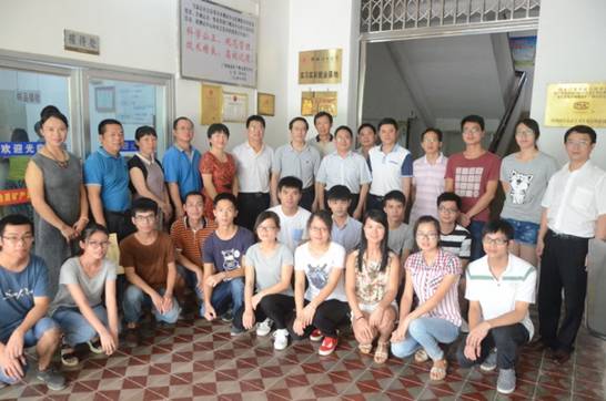 地质矿产测试研究中心领导和员工代表及我院教师、2013级实习学生合影