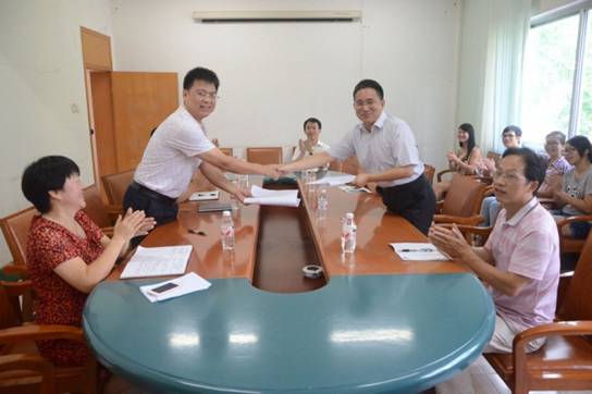7月31日到8月1日,我院院长李建平、副院长潘宏程、应用化学教研室主任杜甫佑等一行3人到广西壮族自治区地质矿产测试研究中心举行了校所合作签约、挂牌仪式。
