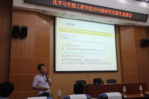 9月19日下午,我院在雁山校区矿冶中心学术报告厅召开2016级硕士研究生新生见面会。学院党委书记梁军、院长李建平,副院长张淑华、副院长刘勇平,硕士生导师、研究生辅导员以及2016级新生参加了会议。会议由张淑华副院长主持。