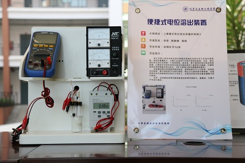 优秀作品中包括太阳能声光控人体感应LED照明灯,太阳能声光控人体感应LED照明灯利用太阳能与感应电路技术,使其在白天依靠太阳能补充电能,供晚上使用,开启照明时,它利用双感应功能即声控与人体感应;基于智能手机的电化学分析仪,它具有外形小、便于携带且与智能手机相结合等特点,构造了一个利用基层监测技术和互联网模式相结合的物联网水质监测系统;多功能简易原子光谱仪,其主要结构是空心阴极灯、雾化器、燃烧器、分光光栅、监测器,其解决了许多高校教用仪器缺乏的问题。