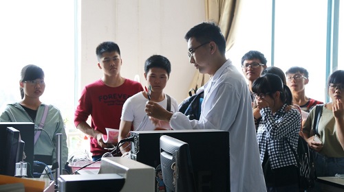 在志愿者的引导下,同学们分别到生物分析与传感器实验室、纳米材料电化学实验室、天然产物实验室、生物转化实验室和电解电镀工艺实验室、中试室等实验室进行参观。相关工作人员以及部分研究生与参观学生进行亲切交流,并做实验示范,向同学们介绍了部分实验的简单操作、实验室的整体规划及建设情况,表示我院在未来发展中将会建立一个更高的实践平台,借此提高同学们的实践能力。