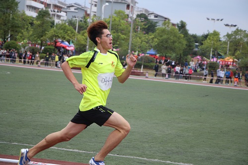 赛道上,你是飞翔的雄鹰,是射出的箭,是飞扬的火焰,是刹那的闪电!迎着飒爽的秋风,你在与时间的纷争就在这短短的几秒,而你留下了矫健的永恒。踏上跑道是一种选择,奔出起点是一种勇气,驰骋赛场是一种骄傲,执著坚持是一种胜利。蹲身预备,起跑枪声,挡不住的是健儿们如火一般的气势;奋勇向前,舍我其谁,忘不掉的是健儿们绝不放弃的咬牙坚持。田径场上,身穿靓丽的荧光绿色衣服的我院运动健儿们随处可见,特色鲜明的他们,总是活跃在各个赛场上,为运动会增添了无限精彩。短跑赛道上,速度与激情瞬间爆发,矫健的绿色身影一呼而过。横杆前,每一次跃起,一道绿色优美弧线总会带给观众阵阵惊喜;手握沉重的铅球,孤注一掷,铅球划破天际,让我们看到健儿们奋力一搏的风姿;长跑比赛中,健儿们紧握拳头,诠释了坚持就是胜利,展现化生人的毅力与信念;跨栏赛上,栏杆挡不住健儿的冲刺,一跃而过,力量与速度完美结合,身轻如燕的他让观众沉醉。
