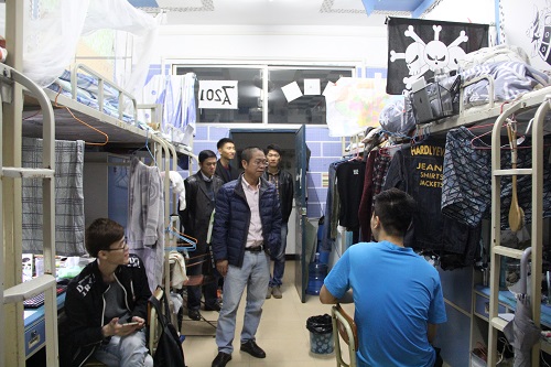 梁书记一行分别到我院大一、大二自习室进行了走访,期间,梁军书记及李建平院长与同学们进行了亲切的交谈,认真了解同学们的自习情况。随后梁书记一行人等到我院大三大四男生宿舍检查。走访宿舍期间,梁书记及李院长一方面关心,关注同学们的生活、学习状况,另一方面对学习不积极的同学,特别是对在宿舍玩游戏的同学进行了严厉的批评。梁书记还告诫同学们要保持宿舍整洁卫生,营造一个和谐良好的宿舍生活学习氛围,同时在大学期间要少玩游戏,多参加集体,加强体育锻炼,达到德智体美劳全面发展。