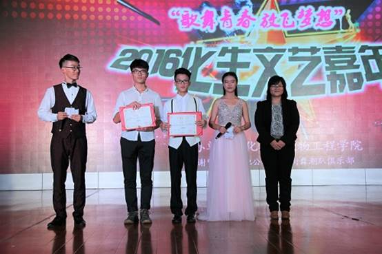 导航痕迹 当前位置: 首页 >> 新闻资讯 >> 学院新闻 >> 正文 化生文艺狂欢夜 歌舞青春共此时 作者:何宗辉 新闻技术中心 发布日期:2016-11-21 浏览次数: 青春如歌,歌唱生活的传奇;青春如花,描绘人生的画卷;青春如舞,舞动生活的魅力。 11月19日晚,我院于雁山校区体育馆举办“歌舞青春•2016年化生文艺嘉年华”主题晚会。我院党委副书记陶剑飞、团委书记饶筠筠、16级辅导员何宗辉出席本次文艺嘉年华并担任评委,其他各兄弟学院学生会文艺部部长应邀参加我院文艺嘉年华并担任评委。 晚会伊始,由我院党委副书记陶剑飞老师上台致辞:丹桂飘香,漓水流长,让我们以青春的力量,在化生文艺嘉年华的舞台上展示自我,希望每位同学都能在大学里遇到更好的自己!随后主持人正式宣布“歌舞青春”;2016年化生文艺嘉年华”正式开始。一段精彩的视频,带着我们回顾了文艺嘉年华初赛时候的精彩时刻。随后,由黄宇秋等人带来《just be a bboy》街舞表演,文艺嘉年华晚会由此震撼开幕。 党委副书记陶剑飞老师为嘉年华致词 第一篇章·活力青春 你存在,我深深地脑海里,我的梦里,我的心里,《我的歌声里》,深情的歌词,动听的歌声,让人沉醉。紧接着由化工15-2班的成员献上《小鸡小鸡》,活泼生动的舞蹈表演将观众从深情款款的歌声中带到了欢乐间,活力四射。在活力中看回童年的画面,我院团委学生会易班研发部的同学带来的爆笑改版话剧《白雪公主与七个小矮人》,让大家开怀大笑的同时重温了童年的美好,领略了不一样的那些年的回忆。曾经的我们多么幸运,体会到那么多的动人故事,谢丹丹和黄镇云轻轻唱和的《那些年的小幸运》,唱出了大家的心声,勾起来多少回忆。曾经的曾经,那些幸运的事情随着歌声,一幕幕浮现在脑海中。你是否还有《勇气》,对那个人说……“爱真的需要勇气,来面对流言蜚语”,青春就要敢于去爱。第一篇章的表演致此告一段落。人生处处充满惊喜,就如何宗辉老师上台表演。何老师以低沉圆润的嗓音为大家献上《爱拼才会赢》,并借此歌来激励大家在大学四年要努力学习,只有铆足了劲去拼搏、去努力,才会赢得未来的成功。 16级辅导员何宗辉老师献唱《爱拼才会赢》 舞台表演《白雪公主与七个小矮人》 第二篇章·魅力青春 徐徐回望,曾属于彼此的晚上。廖坚良同学带来的《千千阙歌》,唱出了青春的悲喜,唱出了青春的故事。在回忆中的观众,又被罗仙玉和桑雪晴同学带来的热辣舞蹈《舞动奇迹》拉回,动感十足、活力四射的舞姿和劲爆的音乐又点燃了现场的激情。或深情演绎、或激昂高涨、或动人感伤,一曲又一曲,今夜是你们的舞台。紧接着乐队演出的《小幸运》又将大家拉回到美好的爱情画面,在优美的歌声中第二篇章结束了。第二轮的观众互动环节开始,开展现场微信“摇一摇”赢大奖,手速惊人的同学拿下了精美的小礼物。 歌曲《千千阙歌》 舞蹈《小鸡小鸡》 第三篇章·礼赞青春 美丽的身影,优雅的扇子舞,拉开了第三篇章的帷幕。你《发如雪》,凄美了离别,我焚香感动了谁……覃晓霞和奚怀深情的对唱让同学如痴如醉。深情过后,由徐金海等同学带来《时间都去那了》演唱表演,演绎了时间的更迭,亲情不随时间而褪色的感人情节,让我们感到心灵的悸动。最后由罗东林、黄菊同学带来的一首《迷》,为礼赞青春篇章画上了句号。又是互动环节,从微信“对对碰”中选出6名幸运观众上台做“萝卜蹲”小游戏,这趣味十足又带有挑战性的小游戏让场上欢笑连连。 嘉年华独家赞助商“M5+1”街舞俱乐部带来的炫酷街舞表演,激情澎湃;吉他公社专业深情的弹唱《南方姑娘》,为我们的嘉年华献上唯美风景。 歌曲《发如雪》 歌舞表演《时间都去哪了》 M5+1街舞潮趴俱乐部舞蹈表演 经过三轮的易班线上投票和现场评委的评分,最终覃晓霞、奚怀同学演唱的《发如雪》荣获第一名,我院党委副书记陶剑飞老师上台为两位同学颁发获奖证书并由“吉他公社·M5+1街舞潮趴俱乐部”负责人为之送上独家提供的千元吉他。荣获二等奖的为《just be a bboy》街舞表演和由徐金海等同学表演的《时间都去哪了》,团委书记饶筠筠老师为两个获奖节目颁奖,廖坚良同学演唱的《千千阙歌》、易班研发部表演的舞台剧《白雪公主与七个小矮人》和张宇曦同学表演的《扇子舞》获得本次嘉年华的三等奖。此次歌舞青春•2016年化生文艺嘉年华到此圆满结束! 青春的旋律,携一缕吉他弹唱的缠绵忧伤;青春的潇洒,带丝丝全身舞动的激情四射。化生文艺嘉年华,歌舞青春,展现自我。此次大赛的圆满举行,丰富了同学们的课余生活,展现了我院学子的朝气和健康向上的精神风貌。充满青春活力的化生学院,明天会遇见更好的自己。 党委副书记陶剑飞老师、M5+1俱乐部赞助商为冠军颁奖 饶筠筠老师为二等奖获得者颁奖 何宗辉老师为三等奖获得者颁奖 “对对碰”游戏环节 活动现场 上一条:化学化工实验中心举行实验室及仪器设备管理专题学习会 下一条:我院召开安全稳定工作会