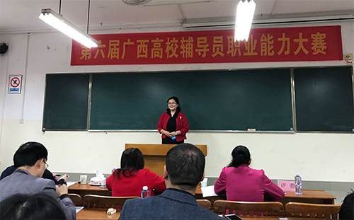 本次比赛由自治区教育厅主办,广西高校辅导员培训基地广西大学承办。大赛设主题班会、基础知识测试和网文写作、案例分析、主题演讲、谈心谈话、综合知识问答6个环节,从不同角度考察辅导员掌握和综合运用思想政治教育、社会学、心理学、管理学、教育学等相关学科知识和方法,分析和破解学生工作实际遇到的问题、开展大学生思想政治教育的能力。比赛最终评出一等奖5名,二等奖15名,三等奖20名。