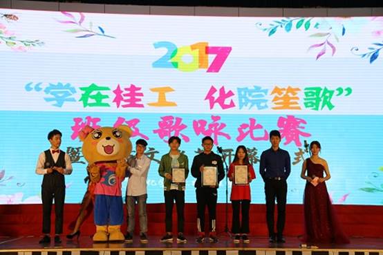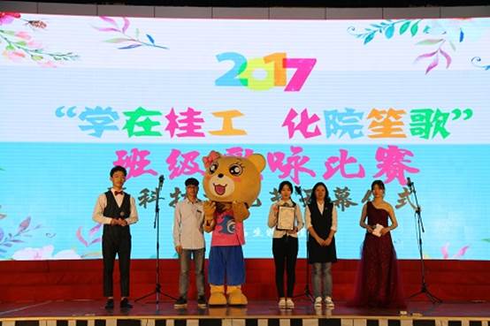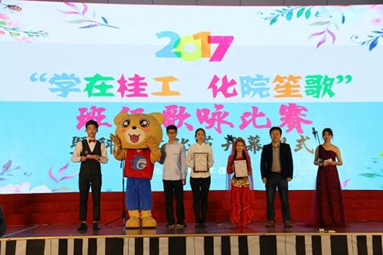 互动之后,主持人宣布本次比赛的获奖结果,获得本次“五四”班级歌咏比赛一等奖的是化药16-1班,由陶剑飞老师为他们颁奖;二等奖是应化15-1、2团队班以及化药16-6班,李培骏老师为获奖班级颁奖;三等奖为化工15-2班、生工16-1班、化工15-1班,何宗辉老师为他们颁奖。陈文甫老师、李冲老师和刘宇辉老师为最佳指挥奖、最佳人气奖、优胜奖获得者颁奖。