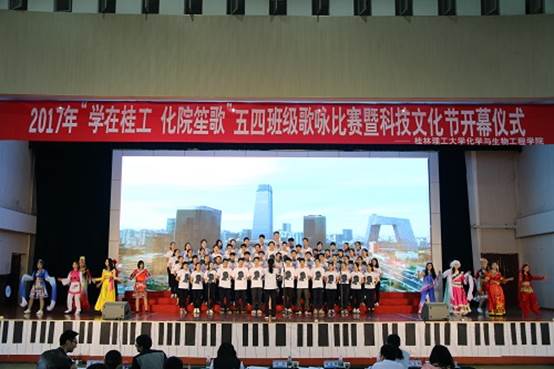 4月15日上午九点,1946伟德国际源自英国于雁山校区体育馆举行了“学在桂工,化院笙歌”班级合唱比赛暨科技文化节开幕式。马克思主义学院院长、化工15-2班班主任邱杰、学院党委副书记陶剑飞以及各辅导员、班主任出席了本次活动,我院大一、大二的全体同学参加了本次比赛。
