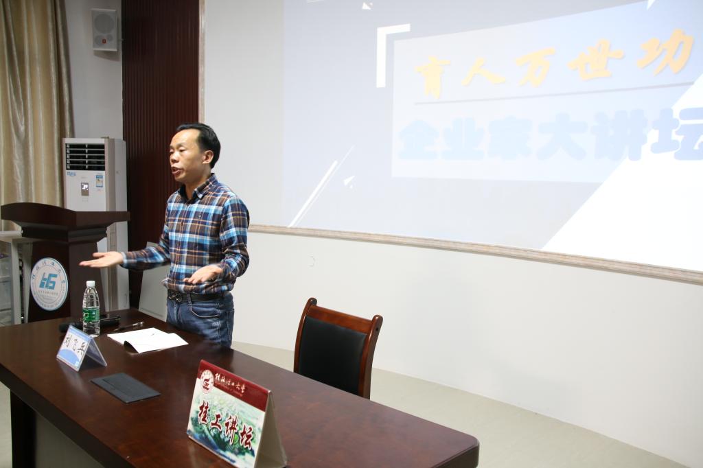为了给同学们提供一个近距离接触创业企业家,聆听企业家的创业故事的机会,4月25日上午9点,我院于萃华楼217多功能厅举办“育人万世功,企业家大讲坛”主题讲座,应邀主讲人是广东江门湖南商会执行会长、广东源天福红木家具有限公司董事长刘飞兵。讲座由学院党委陶剑飞副书记主持。