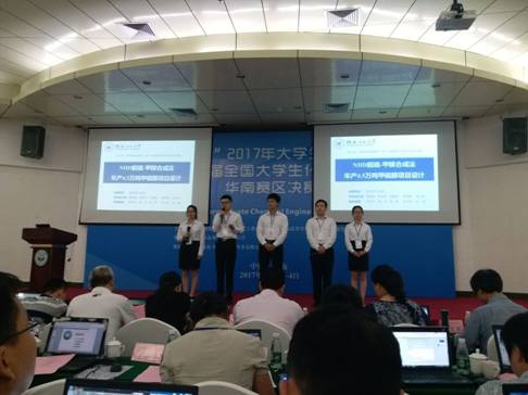 第十一届全国大学生化工设计竞赛分别于今年8月份在珠海中山大学、杭州浙江大学进行了华南赛区、全国总决赛。我院一共组成了17支队伍参赛,进入华南赛区总决赛由42所高校的48支队伍展开了两轮激烈角逐,产生了进入全国总决赛的9支队伍。我院2014级卓越班本科生廖坚良、陈志和、邓家炬、林小芳、陈燕萍组成的代表队在李和平、黎燕、吕奕菊、王晓娟、刘峥、杨文等老师指导下设计的作品“NHD脱硫-甲醇合成法年产4.5万吨甲硫醇项目设计”经过师生共同努力,以其出色的设计作品和精彩的现场答辩脱颖而出,勇夺赛区特等奖;并以广西高校唯一的一支队伍进入全国总结赛,荣获全国总决赛一等奖。