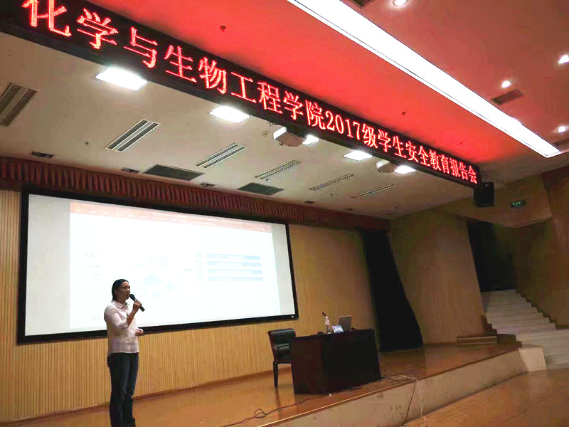 国庆节和中秋节的来临,我们即将迎来了八天的小长假。为了使我们17的新生过一个舒适、安全的节假日,也为了让同学们安全度过大学四年,提高大学生活的安全防范意识。9月28日上午,学院党委副书记陶剑飞老师于图书馆报告厅为2017级新生做了一场安全防范主题教育报告。