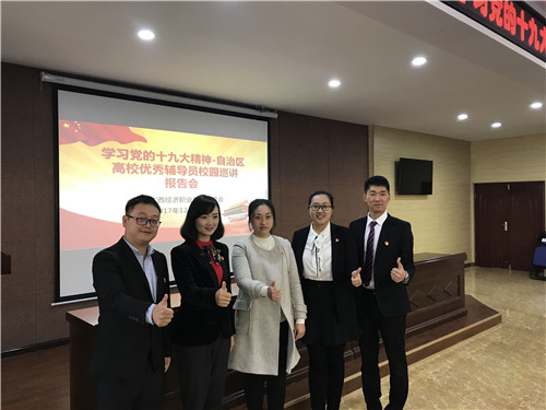 12月18日,我校学习十九大精神辅导员宣讲活动启动仪式暨首场报告会在雁山校区图书馆报告厅举行,我院两位辅导员分别作了报告。