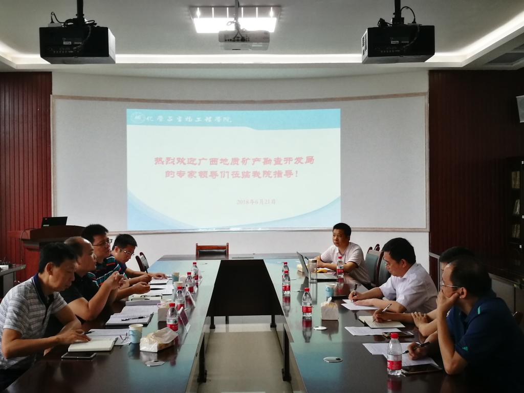 2018年6月21日,广西地质矿产勘查开发局科技与对外合作处处长韦启锋、广西地质矿产测试研究中心主任黄庆柒、副主任、总工程师陈剑平等一行到我院考察调研。