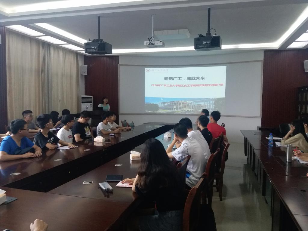 导航痕迹 当前位置: 首页 >> 新闻资讯 >> 学院新闻 >> 正文 广东工业大学客人来访我院 作者:林文钊 发布日期:2019-06-25 浏览次数: 2019年6月24日,广东工业大学轻工化工学院副院长郑育英一行到我院交流访问。我院在雁山校区12116室和来访客人举行了座谈会。学院部分师生参加了此次座谈。座谈会由学院副院长张淑华主持。 会上,张淑华副院长代表我院介绍了学院的研究生培养、科研等情况。郑育英副院长则对其所在学院研究生招生、培养等进行了详细介绍。在校期间,双方人员还就教学、科研、学科建设、研究生培养等问题进行了交流和探讨,并希望今后继续深入开展交流与合作。 会议现场 上一条:我院赴武汉工程大学化工与制药学院进行学习交流 下一条:91级校友朱洪江应邀来我院举办创业交流分享会
