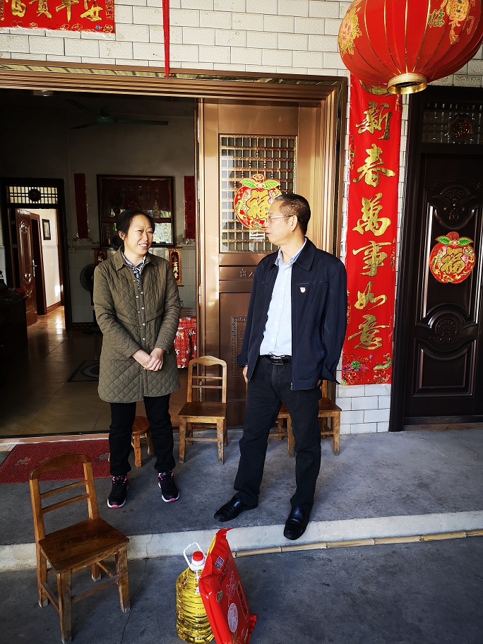我院领导在学校驻三树村第一书记杨晓、王洪让的陪同下深入结对帮扶农户家中进行走访,送去慰问品,了解贫困户一年来的生产生活情况,并向老乡们转达了学院师生的良好祝愿。