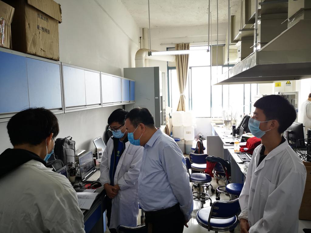 检查期间,梁副校长走访了我院全部实验室。每到一处,梁副校长都亲切与同学们进行交流,询问他们的毕业设计(论文)进展情况、到校后学习生活上是否存在困难等。他提醒同学们要在做好疫情防控的基础上统筹安排时间,严格按照学校规定的时间节点完成毕业设计(论文)等课业任务。他反复叮嘱大家要合理安排实验进程,时刻牢记“安全第一”的原则,不能因抢时间抢进度而放松安全警惕。他预祝同学们实验进展顺利,在毕业季取得优异成绩。梁副校长同时强调,学院要做好教学场所的消毒、进出人员体温检测等疫情防控工作,要密切关注学生返校后的学习生活情况,切实做好各项服务工作,为学生顺利毕业创造良好条件。