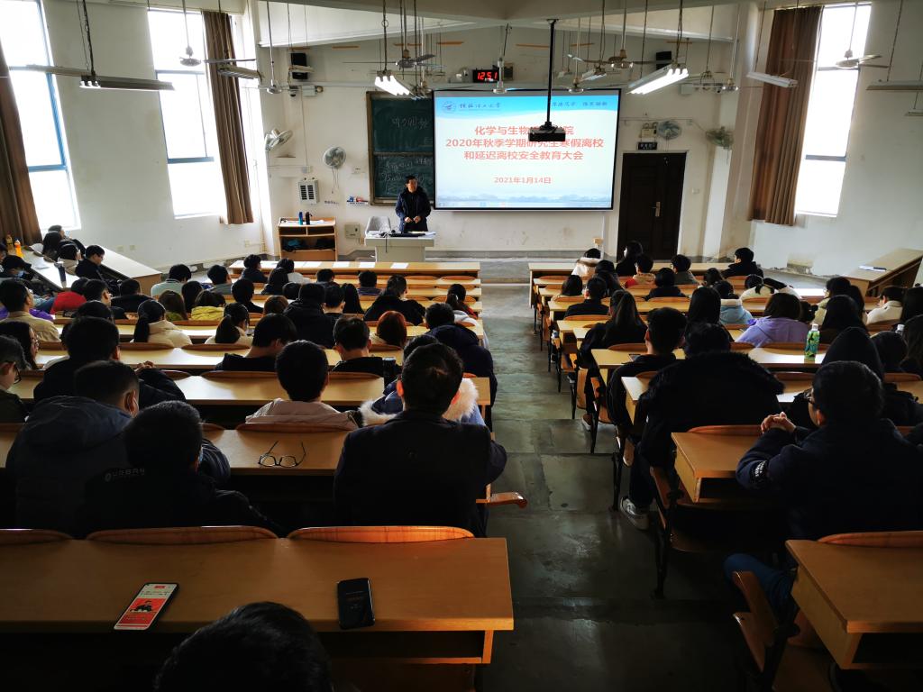 为做好学院研究生寒假正常离校与延迟离校相关工作。1月14日中午,学院在雁山校区04505教室召开全院研究生安全教育大会,学院院长助理孔翔飞,研究生辅导员黄道坤参加了会议。