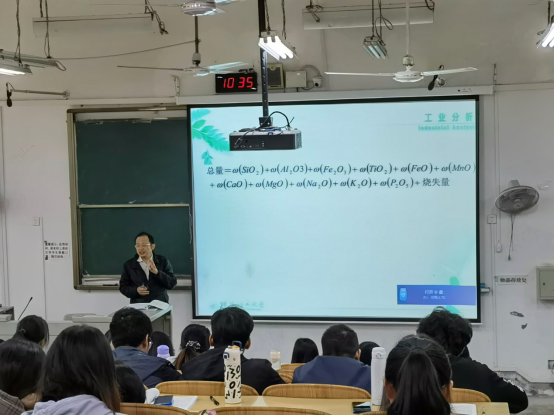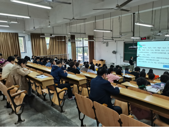 导航痕迹 当前位置: 首页 >> 新闻资讯 >> 学院新闻 >> 正文 应用化学教研室开展教学观摩活动 作者:李琳 发布日期:2021-11-04 浏览次数: 为了加强教师间的交流学习,进一步提高教师的教学技能和效果,2021年11月2日在雁山04111教室,应用化学教研室组织部分教师对阮贵华老师的“工业分析化学”课程进行了公开课教学观摩活动。 阮贵华老师从组成、分析项目、分析方法、准确度要求和试样的分解五个方面讲授了《硅酸盐分析的特点和方法》的内容,并指导学生进行了问题思考与讨论。课堂上,阮老师运用大量的实例对知识点进行生动的讲解,强调重点,解答难点,积极调动学生们的学习热情,学习效果优良。随后,参加观摩活动的各位老师从课堂教学设计、教学内容、教学方法等方面的与授课教师进行了深入地交流与探讨。本次公开课观摩活动,为教师们提供了一次珍贵的交流、学习、提高的机会。 阮贵华老师主讲工业分析化学公开课 教研室老师和同学们一起认真听课 上一条:我院举办高校青年骨干教师教学基本功提升专题讲座(青教赛备赛经验分享篇) 下一条:我院师生参加广西本科高校生物科学与生物工程类教学指导委员会院长联席会议暨第三届大学生创新创业竞赛