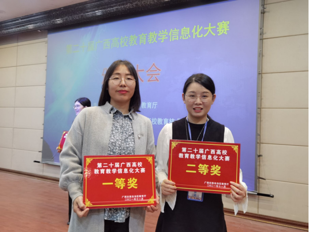 导航痕迹 当前位置: 首页 >> 新闻资讯 >> 学院新闻 >> 正文 我院教师在第二十届广西高校教育教学信息化大赛喜获佳绩 作者:张会香 发布日期:2021-11-23 浏览次数: 近日,2021年第二十届广西高校教育教学信息化大赛在广西科技师范学院举行。本次大赛共收到全区 37 所本科高校推荐 268 件参赛作品,大赛组委会组织专家于 2021 年 10 月 16 日—22 日对作品进行了网络初评,按文件规定评出 161 件 入围作品(60%)进入决赛,2021 年 11 月 19 日—21 日在了现场决赛,经过激烈角逐,现场决赛共评选出一等奖28名,二等奖53名,三等奖80名。我院教师张会香老师获一等奖, 邹建梅老师获二等奖。 据悉,2021年第二届教师教学技能大赛由自治区教育厅主办,大赛设置虚拟仿真作品、小规模限制性在线课程,系列化微课和智慧教室应用课例4个赛项。比赛旨在全面提升本科院校教师教育教学能力、综合素质、专业化水平和创新能力。 我院高度重视本次比赛,赛前制订了详细备赛方案,精心组织比赛,邀请了校内专家老师进行点评指导,积极为参赛老师提供帮助。本次比赛,不仅对提升我院教师教育教学技能具有积极意义,而且对推动我院实施课堂教学改革、提高课堂教学质量同样具有促进作用。 获奖教师张会香(左)和邹建梅(右)合影 上一条:我院举办2021年第八届“化生杯”教师授课比赛 下一条:广西本科高校生物科学与生物工程类教学指导委员会主任委员李有志教授应邀到我院作报告