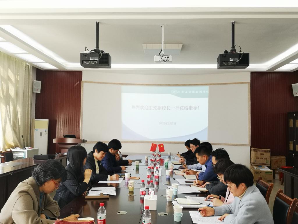 导航痕迹 当前位置: 首页 >> 新闻资讯 >> 学院新闻 >> 正文 王玫副校长一行到我院检查指导开学工作 作者:林文钊 发布日期:2022-03-08 浏览次数: 3月7日下午,学校党委常委、副校长王玫在统战部、科技处、发监中心等部门领导陪同下到我院检查指导开学工作,在雁山校区12217多功能室召开了座谈会。我院全体党政领导班子成员参加了此次会议。 会上,我院党委书记彭代江、院长匡小军等领导就学院开学工作情况、新学期重点工作计划、学院战略研讨会召开情况、学院党建情况以及希望得到学校帮助解决的主要困难等进行了汇报。 听取汇报后,王玫副校长对我院的开学工作等表示肯定,对学院提出的困难做了回应。她还作了进一步指示:一是要继续抓好博士点建设,要把此项工作当做学院头等大事来抓,主动作为,力争实现新突破;二是要高度重视长江学者等国家级人才项目申报工作,这不光是学院的重点工作,同时也是学校的重点工作之一,希望学院主动和学校加强沟通,共同解决所遇到的困难;三是要高度重视科技奖申报工作,做好动员和跟踪服务,争取获得更好成绩。此外,学院要按计划推进其他重点工作,努力实现全年总体目标。 王玫副校长讲话 会议现场 上一条:生物工程专业召开专业认证校内专家评审会 下一条:我院举行“2022基金申请面对面活动”