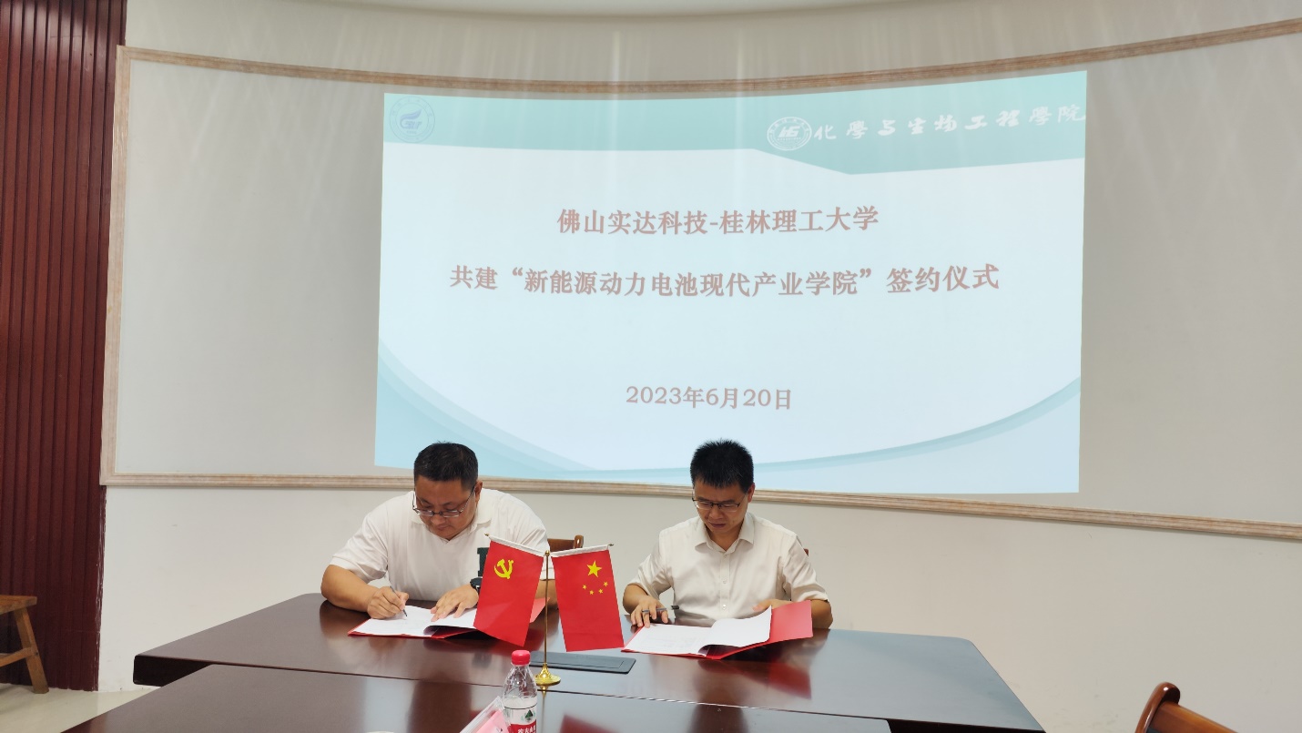导航痕迹 当前位置: 首页 >> 新闻资讯 >> 学院新闻 >> 正文 佛山实达科技与我校共建“新能源动力电池现代产业学院”对接会顺利举行 作者:黄斌 发布日期:2023-06-21 浏览次数: 2023年6月20日下午,佛山实达科技-伟德国际1946源于英国共建“新能源动力电池现代产业学院”对接会在雁山校区教12楼12217会议室顺利举行,我校化学工程与工艺(电化学)2002级校友佛山实达科技有限公司事业部总经理潘金前、佛山实达科技有限公司事业部研发经理黄晓涛工程师和我校化生学院院长匡小军研究员、副院长刘勇平教授、副院长何方教授、校友办校友联络科科长凌日飞以及能源化学工程教研室相关老师参加了会议。 会上,匡小军院长对潘金前总经理一行的到来表示热烈欢迎,并简要介绍了学院近年来的发展情况。潘金前总经理介绍了佛山实达科技有限公司的主营业务、规模、发展近况等。刘勇平副院长介绍了我校与佛山实达科技有限公司合作的有关情况。 随后,匡小军院长与潘金前总经理共同签署了《共建“新能源动力电池现代产业学院”合作协议》,潘金前总经理向我校“新能源动力电池现代产业学院”捐赠了价值200万元的电池装配中试线一套。最后,双方围绕产业学院的人才培养、产学研合作方面开展了深入的座谈交流。 签约仪式现场 电池装配中试线捐赠仪式 座谈会现场 上一条:化生学院召开2023版本科人才培养方案答辩评审会 下一条:广西大学蒋承建教授应邀到我院作学术报告