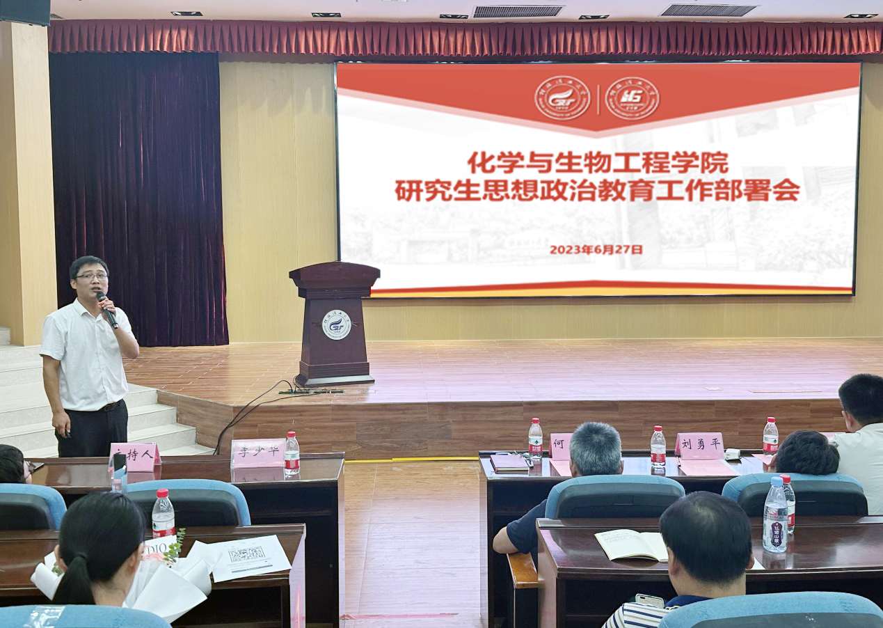 导航痕迹 当前位置: 首页 >> 新闻资讯 >> 学院新闻 >> 正文 学院召开研究生思想政治教育工作部署会 作者:黄道坤 发布日期:2023-06-27 浏览次数: 为深入贯彻全国高校思想政治工作和全国研究生教育工作会议精神,全面提高研究生思想政治素质。6月27日,学院在雁山校区图书馆报告厅召开研究生思想政治教育工作部署会,学院党政领导班子成员及全体研究生导师、辅导员、教秘参加了本次会议。会议由学院党委书记彭代江主持。 会上,分管研究生思想政治教育工作党委副书记李少华对《伟德国际1946源于英国关于进一步加强研究生思想政治教育工作的实施意见(试行)》文件进行了详细解读。他结合学院工作实际,从组织体制、责任体系、队伍建设、教育途径、主体作用发挥和措施保障等六个方面部署了学院研究生思想政治教育重点工作。 学院党委书记彭代江表示,研究生思想政治教育工作是研究生教育的重要组成部分,提高研究生思想政治素质,有利于强化研究生培养质量,推动学院高质量发展。他就落实研究生思想政治教育工作提出明确要求,一是要提高政治站位,强化引领,以高质量党建引领研究生思想政治育人工作,落实立德树人根本任务;二是要健全完善机制,充分发挥导师作用,培养好研究生拔尖创新人才,助力学院高质量发展;三是要筑牢安全责任意识,牢固树立红线意识和底线思维,守住研究生安全教育管理工作底线。 会议现场 上一条:英国贝尔法斯特女王大学黄美兰博士应邀到我院作学术报告 下一条:化生学院召开2023版本科人才培养方案答辩评审会