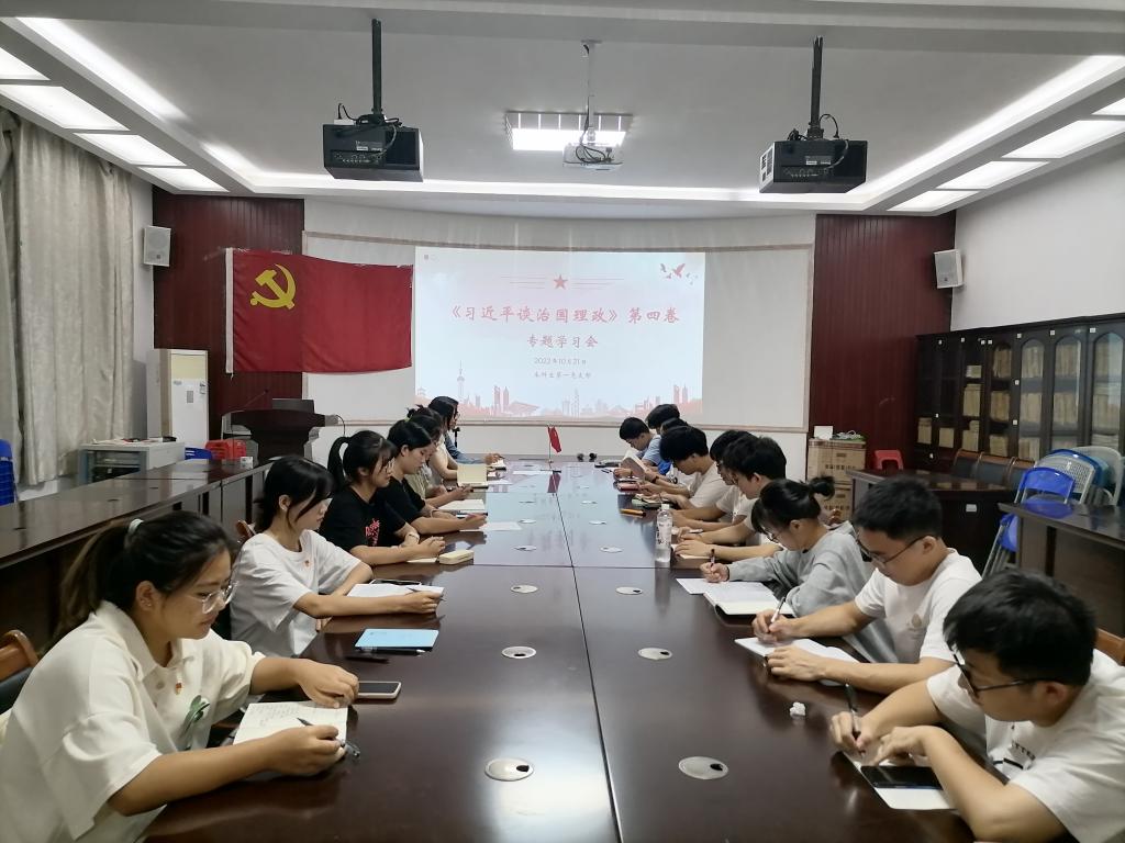 导航痕迹 当前位置: 首页 >> 党建工作 >> 学习贯彻习近平新时代中国特色社会主义思想主题教育 >> 正文 【党史学习教育】我院本科生第一党支部开展学习《习近平谈治国理政》第四卷主题党日活动 作者:熊艳 李学来 黄垂芸 发布日期:2022-10-27 浏览次数: 为了增强支部成员的思想建设,提高思想认识,10月21日,我院本科生第一党支部在萃华楼12217会议室开展学习《习近平谈治国理政》第四卷主题党日活动,支部全体党员同志参加此次会议。 本次活动由李学来同志主持。首先,陈天凤同志领学专题一并发表感想。她表示我们不仅要加深党内党员的联系,还要加深党员与同学们的联系以及宣传党的方针政策,让同学们真正理解习近平新时代中国特色社会主义思想这一党的理论创新成果。接着,由陈雪兰同志领学专题二并发表感想。她指出每个党员干部都是社会主义的宣传员。在增强“四个意识”、坚定“四个自信”、做到“两个维护”的过程中,要善于宣传,成为网络上和生活中的引导者,积极纠正偏激言论、引导正常舆论走向。随后,廖群同志领学专题三并发表感想。她强调我们作为当代青年理应积极响应党的政策,自觉提高自身修养,提升为人民服务的本领,从身边的小事做起,强化担当精神,主动宣扬全心全意为人民服务的宗旨。最后,李学来同志对此次活动做出总结。他表示三名同志对本次专题学习的理解都非常深刻,希望支部全体同志都能深入学习《习近平谈治国理政》第四卷,准确把握习近平总书记的思想精华,夯实自身的理论基础。 通过本次活动的学习,支部党员同志深刻领会到了《习近平谈治国理政》第四卷的理论精华,表示将努力提高自身素养,增强工作能力,用科学的思想武装自己的头脑,注重理论与实践的结合,切实发挥党员的先锋模范作用。 活动现场(一) 活动现场(二) 上一条:【党史学习教育】研究生第五党支部开展学习“党的二十大报告”主题党课 下一条:【党史学习教育】“守正创新敢为先 踔厉奋发勇向前”——研究生第六党支部召开党的二十大报告学习分享会