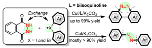 [12] R. Xie,# H. Lv,# X. Ye, X. Kong*, S. Li*. Cu-Catalyzed tandem N-arylation of phthalhydrazides with cyclic iodoniums to yield dihydrobenzo[c]cinnolines. Org. Biomol. Chem. 2020, 18, 4824−4830. (# Equal contribution) (SCI三区)