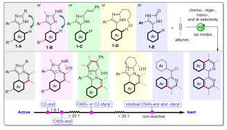 [20] Y.-N. Tian, S. Lv, L. Huang, C. Wen, Y. Yang, X. Kong, Q. Zhu*, S. Li*. Experimental and computational studies on rhodium-catalyzed C4(5)aryl−H activation/annulations of imidazoles with alkynes: facile synthesis of six types of N-heterocycles. Org. Chem. Front. 2023, 10, 83−91. (SCI一区)